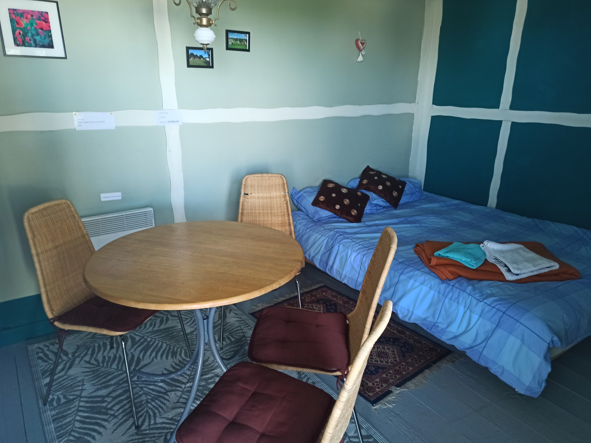 Vous avez le choix entre deux gîtes différents. Le petit gîte est conçu pour deux personnes et comprend une chambre avec deux lits simples, une cuisine-salon et une grande salle de bain. Il y a une marche entre la cuisine et la salle à manger, ainsi qu’entre la salle à manger et la salle de bain. Le gîte dispose également d’un petit jardin privé avec des sièges et un barbecue.Le grand gîte peut accueillir jusqu’à cinq personnes. Il dispose d’une chambre au rez-de-chaussée avec un lit double et une petite salle de bain attenante. Il y a également une cuisine ouverte et un coin salon au rez-de-chaussée, ainsi qu’une autre salle de bain. Le premier étage est accessible par un escalier raide et abrite une autre chambre avec un lit simple et un lit double. Le gîte possède une petite véranda, où vous pourrez vous détendre en cas de mauvais temps. De plus, il y a un accès à un grand jardin avec un foyer et un barbecue, à partager avec la propriétaire.Les animaux de compagnie sont chaleureusement acceptés. Cependant, il convient de faire attention aux poules qui se promènent librement.